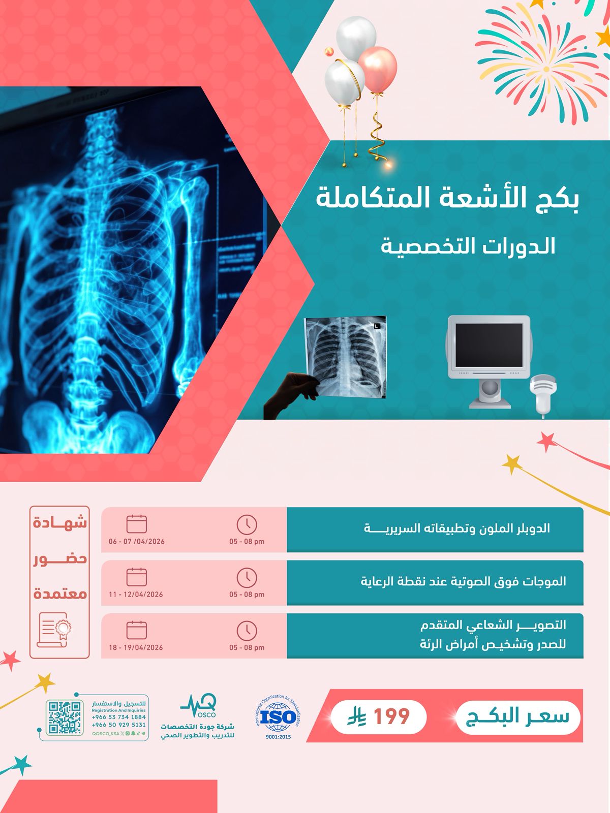 (الدوبلر الملون وتطبيقاته السريرية - 4️⃣ - الموجات فوق الصوتية عند نقطة الرعاية - 4️⃣ - التصوير الشعاعي المتقدم للصدر وتشخيص أمراض الرئة - 4️⃣)